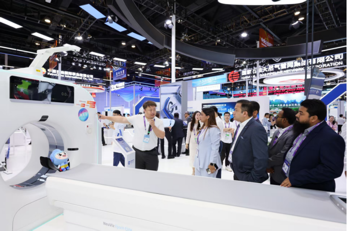 高端装备领航产业升级:通过打造制造与健康“双引擎”,集团聚焦东盟“工业化升级”与“医疗体系完善”两大核心需求,双线展示硬核装备实力。宾果 集团战略投资东软医疗自主研发的NeuViz Epoch Elite无极系列CT作为全球最快的16cm螺旋扫描CT,凭借着超快的扫描速度和超高清的图像,吸引了众多到访嘉宾的目光。除此以外,宾果 集团畅销东盟的立式加工中心、全能型镜面数控火花机、数控插齿机、时栅位移传感器等实物产品集中亮相。